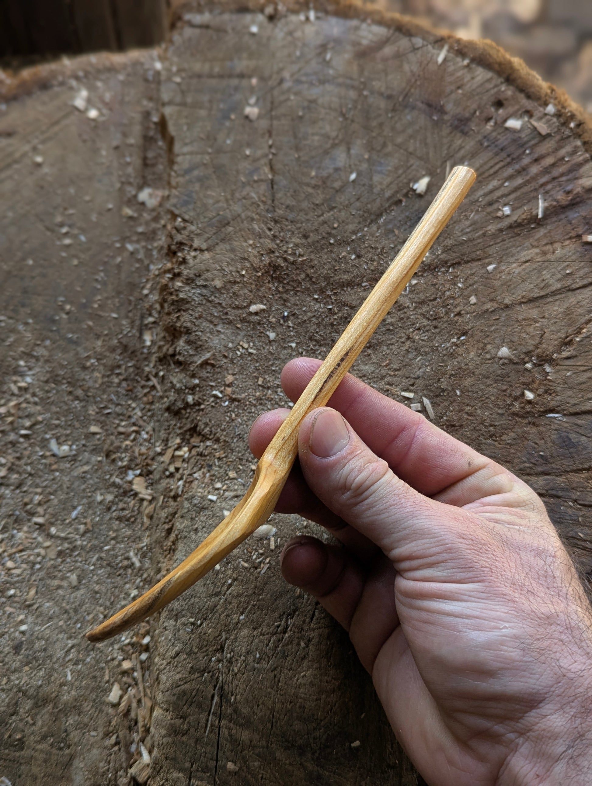 Hand carved from locally sourced Cherry (Prunus Serulata) using only an axe and knife. Burnished and coated with a blend of organic Walnut and Carnauba wax for a water-resistant finish. ready to ship