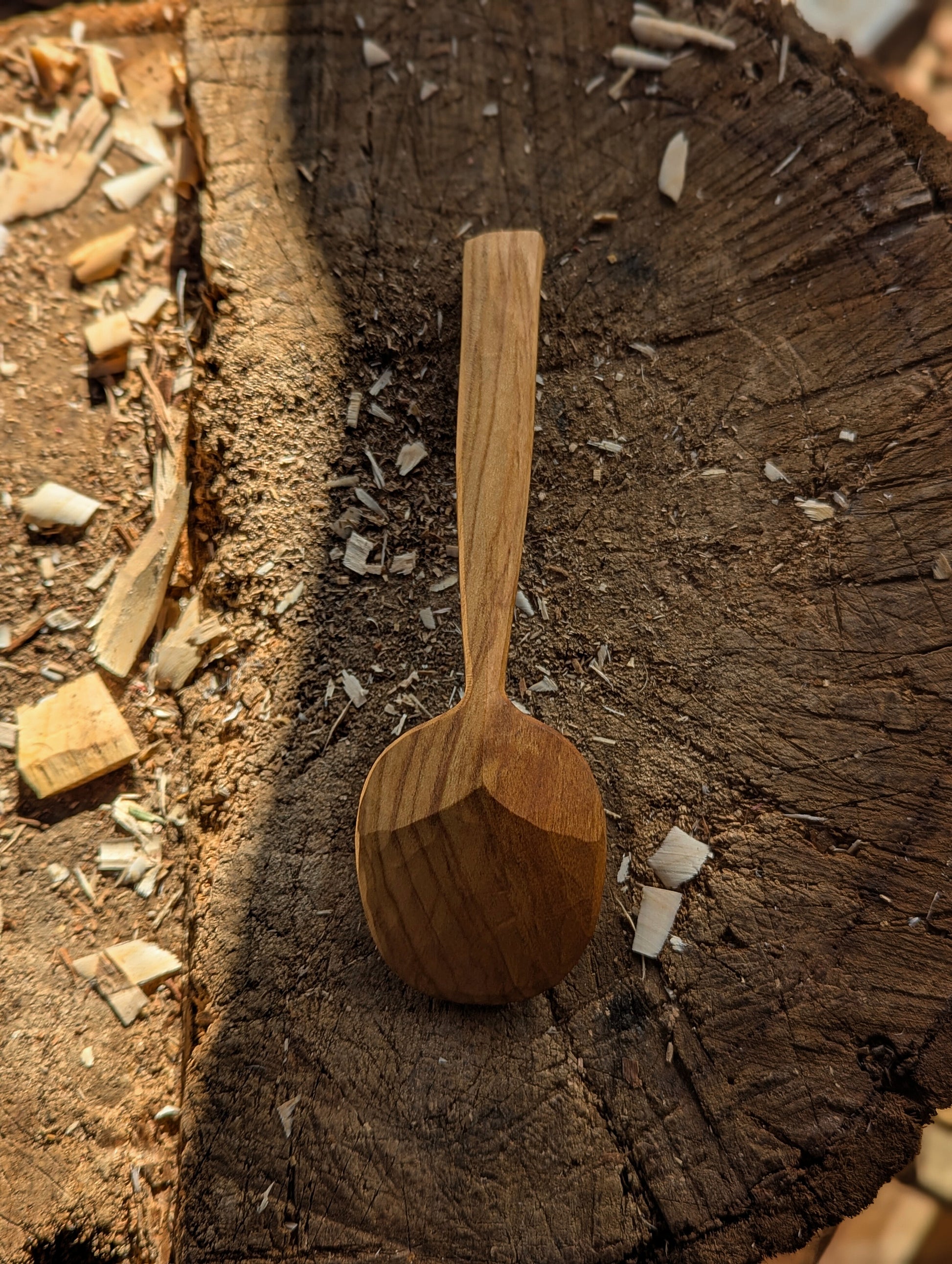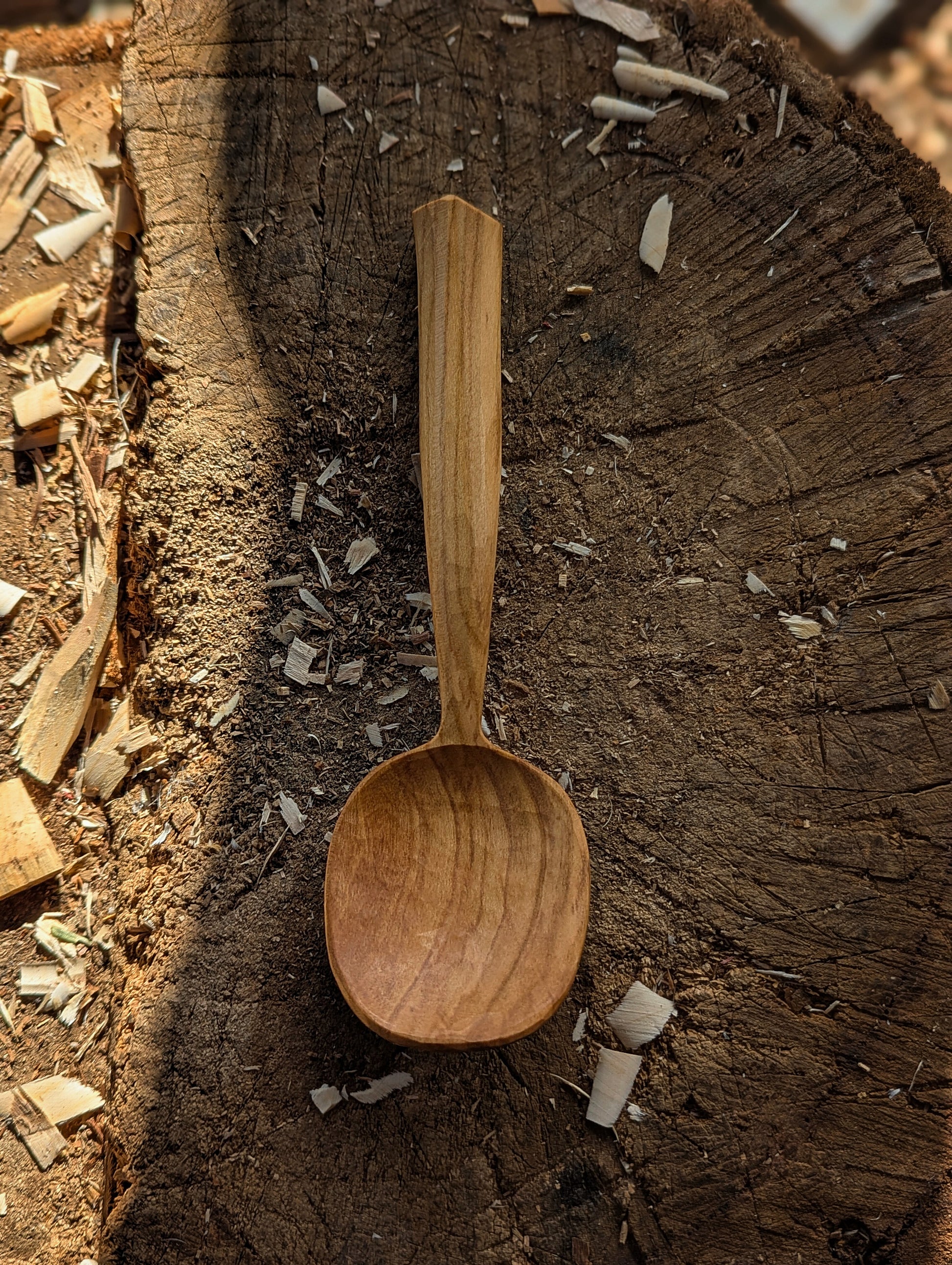 Hand carved from locally sourced Cherry (Prunus Serulata) using only an axe and knife. Burnished and coated with a blend of organic Walnut and Carnauba wax for a water-resistant finish. ready to ship